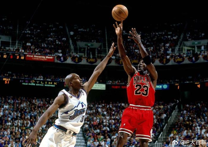 重温经典,乔丹在98年总决赛第六场最后一投,生涯第二个三连冠